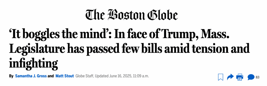 “For them to pass [six] bills in five months when we’re facing a crisis of unprecedented levels from the federal administration, it boggles the mind,’ said Scotia Hille, executive director of Act on Mass, a progressive advocacy organization.”